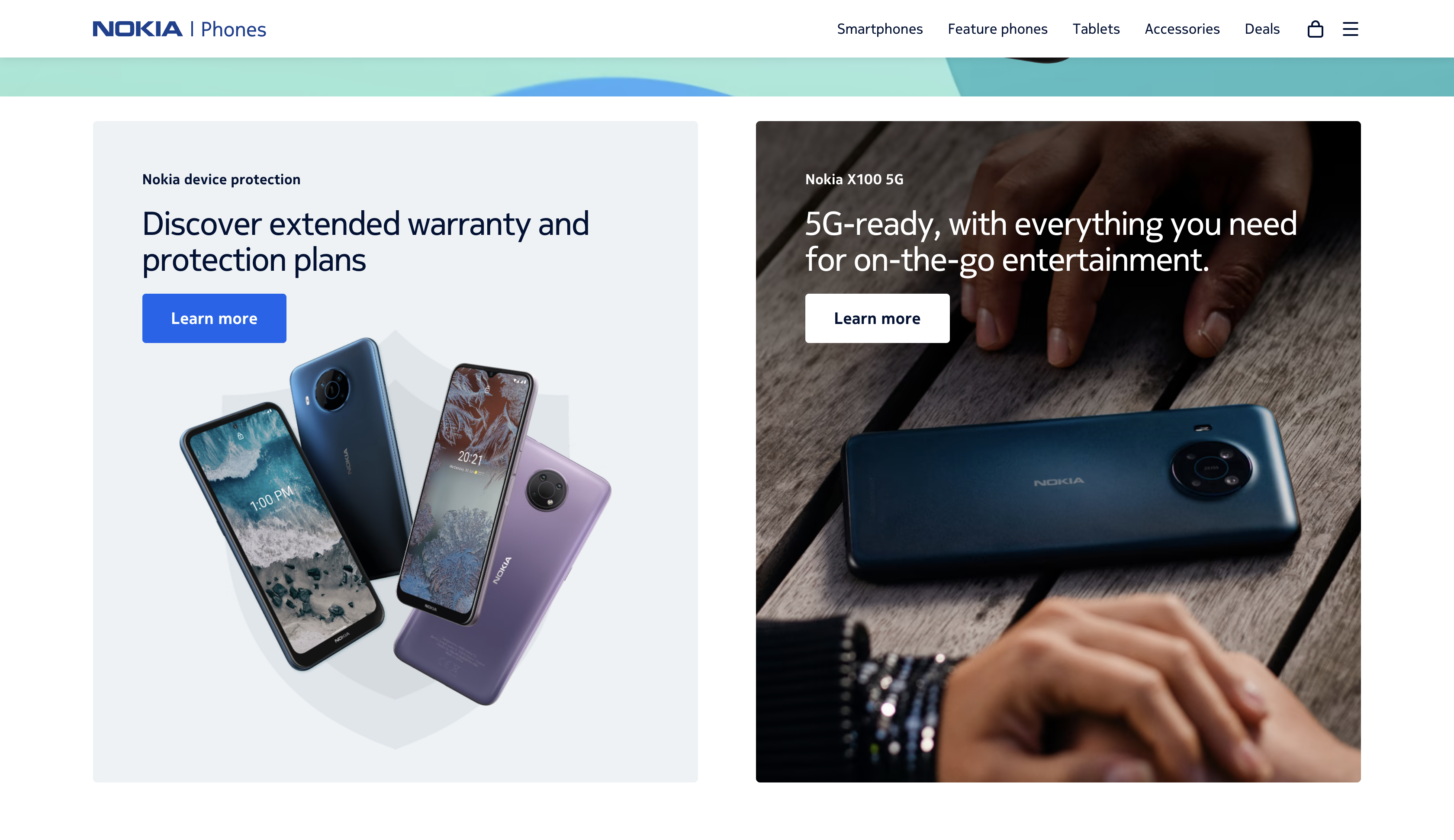 On the homepage, I featured the new products in a similar manner to the Nokia website.
