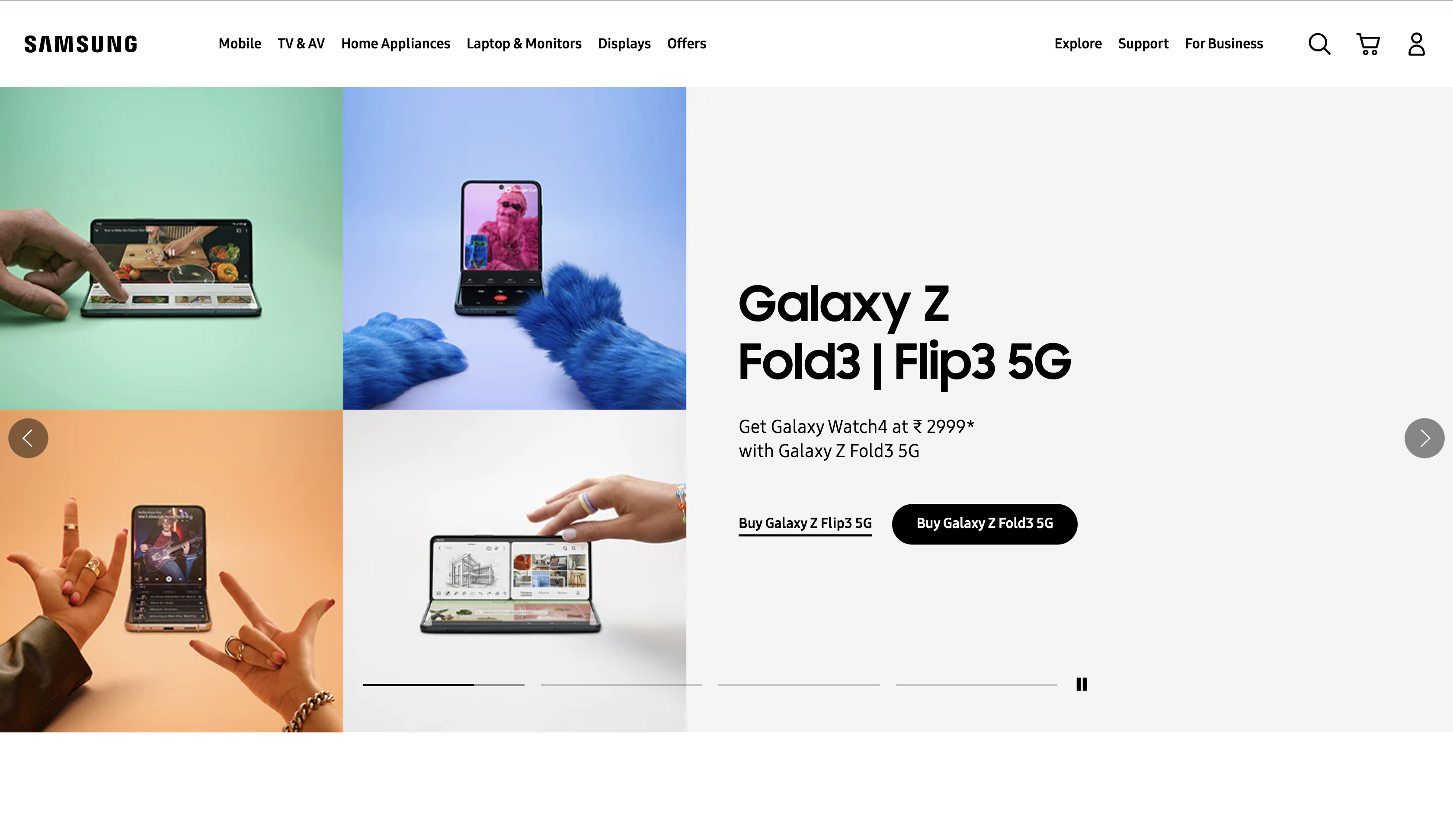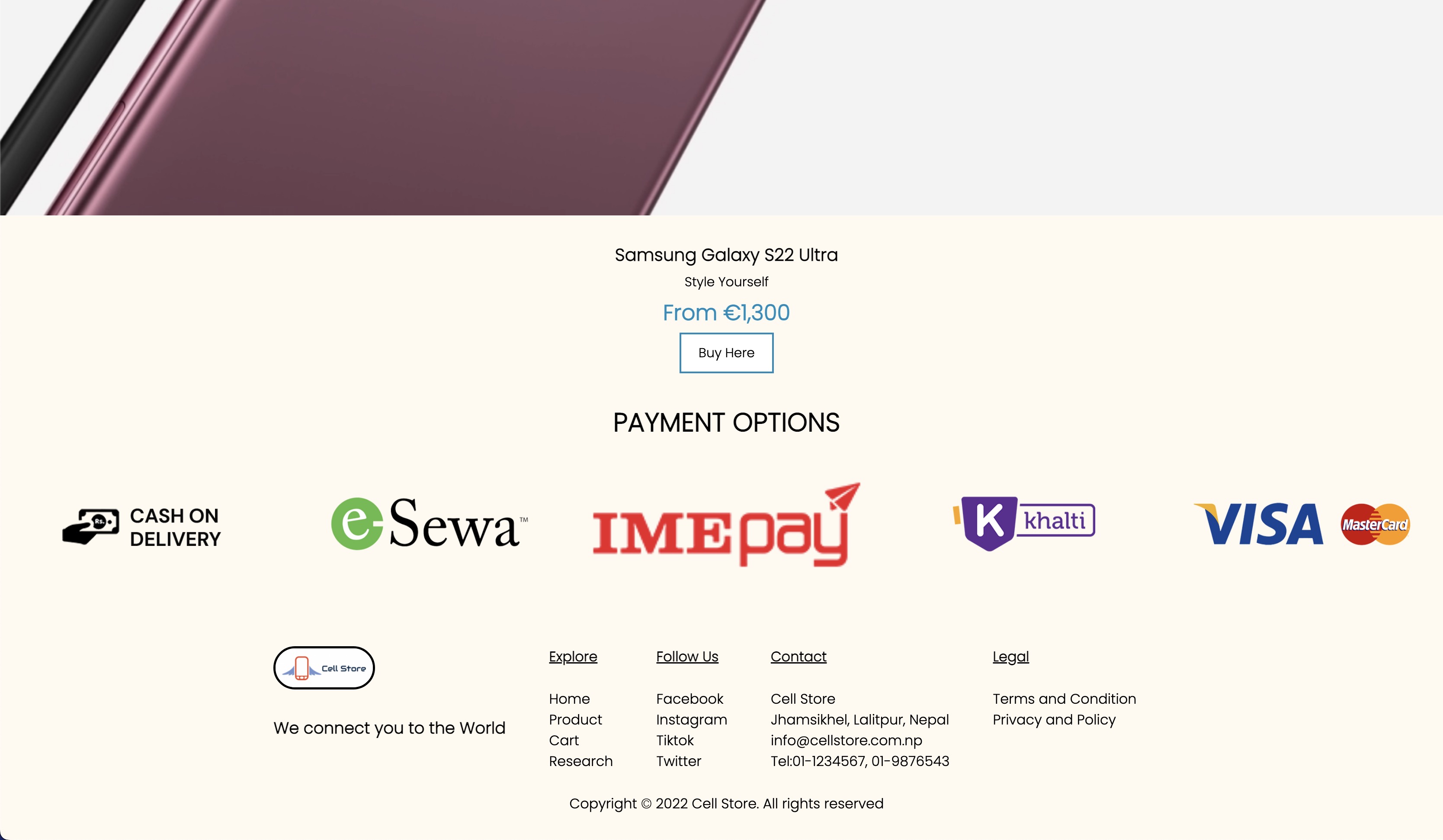 I used Samsung's official website as a reference for the navigation bar dimensions, menu listing, and product display style.
