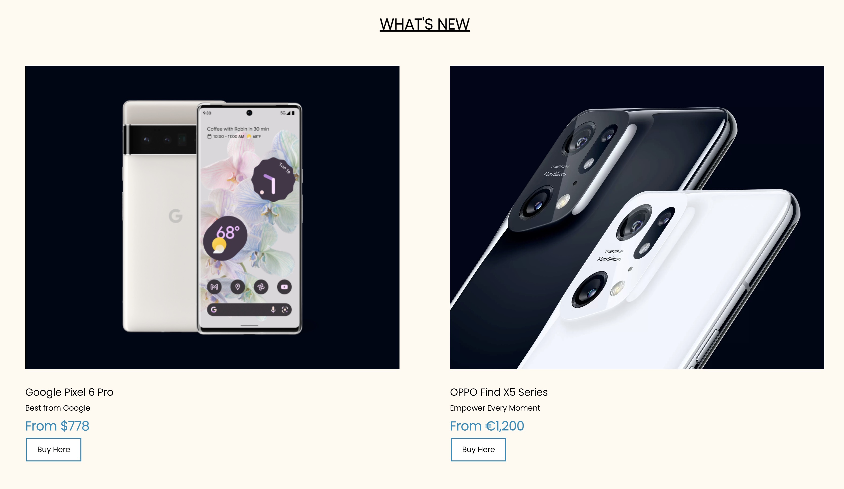 The smartphone showcase page on the Oppo website appealed to me greatly. As a result, I used a similar layout on my website.